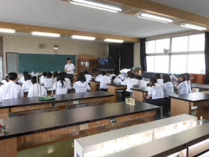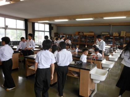 1Cの2時限目の授業は理科室で理科の実験、レポートです。