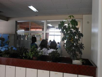 1年生が歯の検査を受けています。静かに並んでいます。
