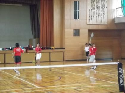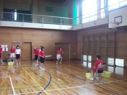 ソフトテニス部は雨天のため体育館を半面お借りし練習しました。