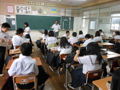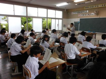 6時限目の1年生の授業です。テストを返してくれているクラスもあります。今日は蒸し暑くて授業は大変です。