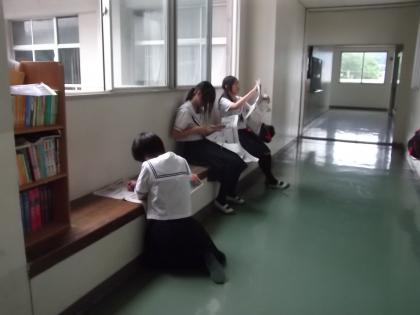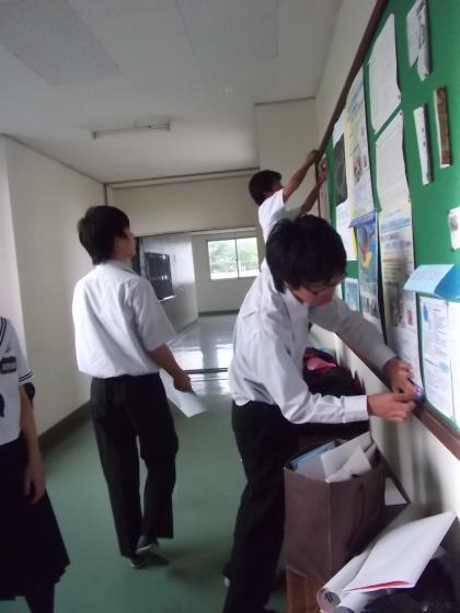 生徒玄関の詩を書き換えたり、新聞の切り抜きを2階の渡り廊下に掲載しました。みなさん見て下さいね!!
