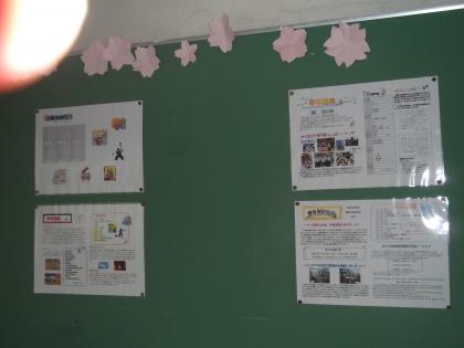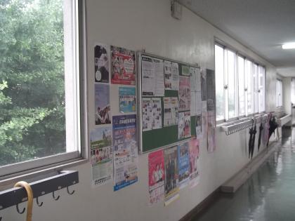 各学年の教室前廊下《1年生は学年通信・2年生は、校外学習のまとめ・3年生は進路関係》