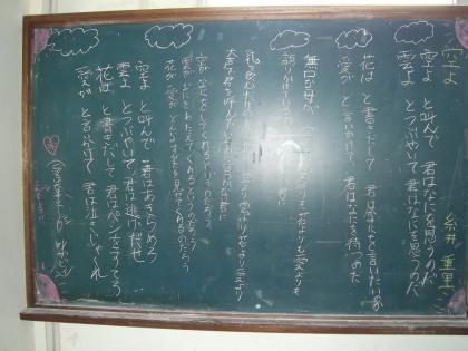 掲示委員が生徒玄関の黒板に詩を書いてくれています。