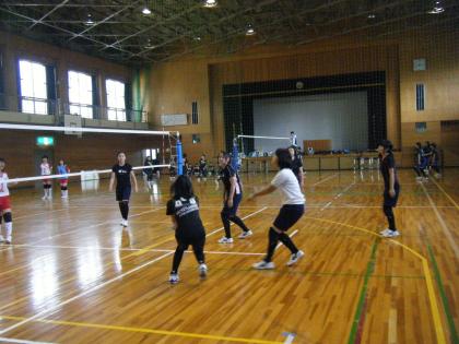 本日、バレーボール部は午後から西部中学校で、西部中学校、高野山中学校と練習試合を行いました。2コートを使い、3年生チーム、2年生チームと別れて試合を行いました。