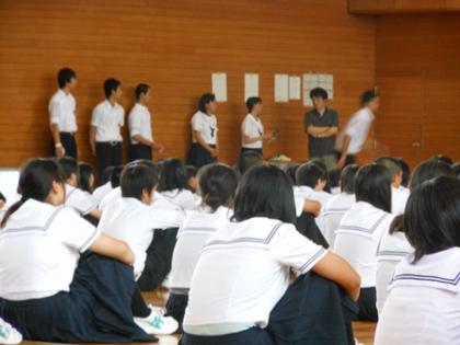 中体連壮行会 12 公開日 2012/07/13 更新日 2012/07/13 部活動 明日からの夏季総合体育大会は、体育部の3年生にとっては最後の大きな大会です。自分に悔いを残さないように、また後輩の手本となるように力一杯戦ってください。勝利を君たちの手に。特に自分の心に勝利しよう。