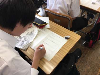 3年生は六限目に楽しかった思い出を振り返り、修学旅行のまとめを行いました。
