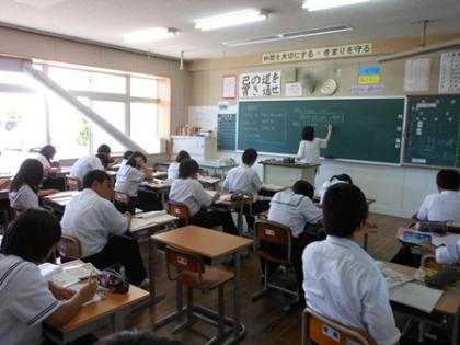 夏休み前の最終授業です。1Aは英語、1Bは国語、1Cは社会です。