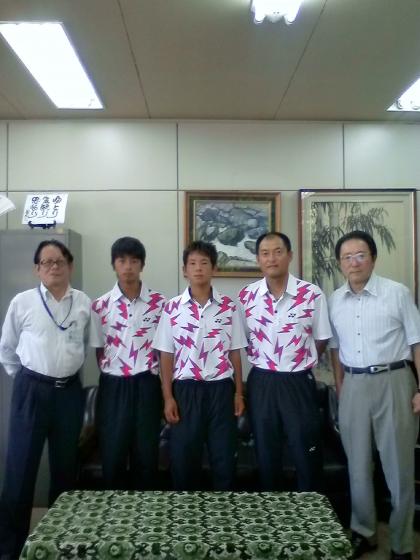 8月15日(水)、橋本市教育委員会教育長室において、全国大会出場激励会が行われました。第43回全国中学校ソフトテニス大会【個人戦】出場について松田教育長さんより激励のお言葉(全力で・悔いの残すことなく・大会を楽しんで)をいただきました。また、田中・二階堂は《これまでに学んできたことを全て出し切って来ます》という力強い口調で抱負を述べました。