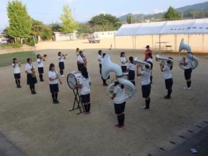 吹奏楽部が行進の練習をしています。