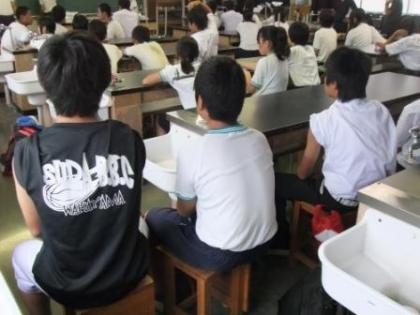 反省会では全員が真剣な表情で前を向いて話し合っています。
