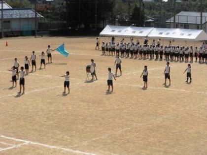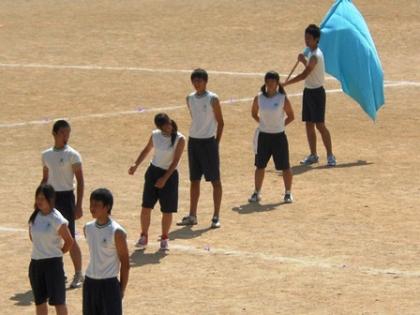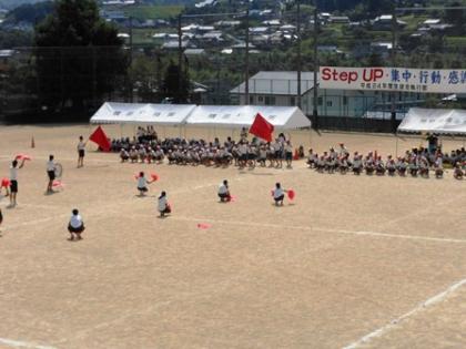 暑い中、生徒たちの声が響きます。暑さを吹き飛ばそう。