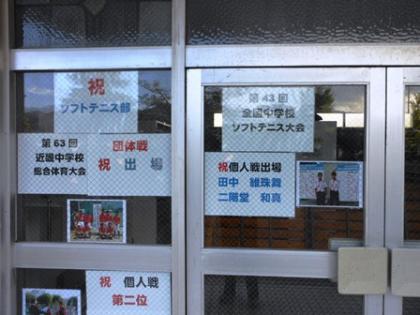 体育祭のポスター、そして県大会、近畿、関西、全国大会に出場した部、生徒たちの記録です。