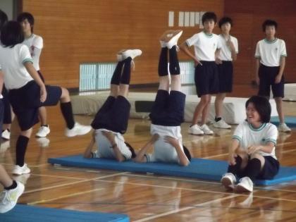 体育授業のマット運動も後半になり、個人練習が中心となってきました。