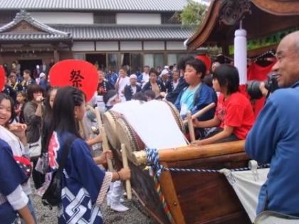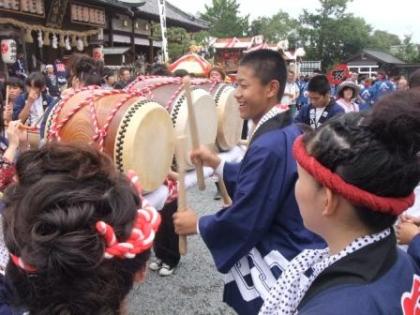 地元の先輩方に指導してもらいながら、楽しそうに叩いていました。