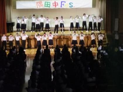 課題曲の後では生徒全員が着替え、「ワイルドアットハート」は嵐の曲ということで、嵐のメンバーカラーに合わせたリボンとキラキラを着けて披露してくれました♪