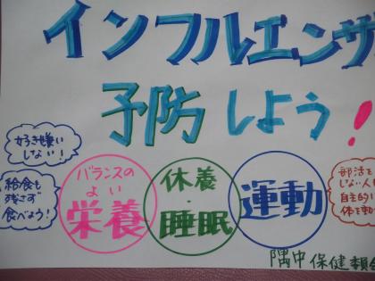 これから季節の変わり目となり風邪が流行る季節となります。保健委員によりインフルエンザの予防ポスターを制作中です。