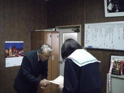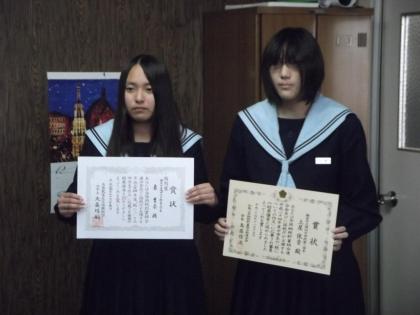 大桑財団会長賞に 3年 東里奈さん が選ばれました。