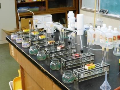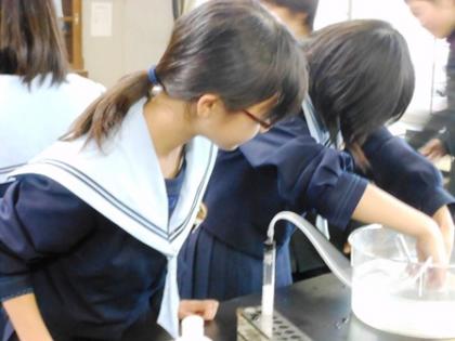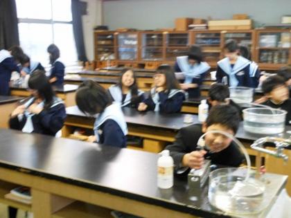 1年生の6時間目の授業です。1Aは理科室で水上置換法による二酸化炭素と酸素の生成です。