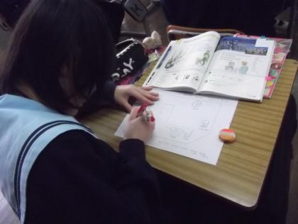 1Aでは、ジョンソン先生の英語を聞き取って、それを絵に表していました♪