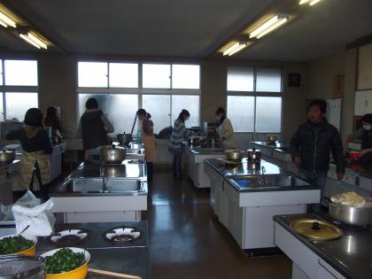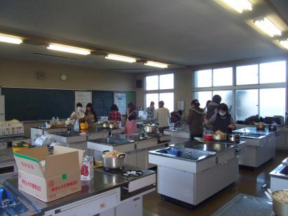 マラソン大会の後にいただく豚汁の準備に、早朝より沢山のPTAのかたがたが家庭科室に集まっていただきました。