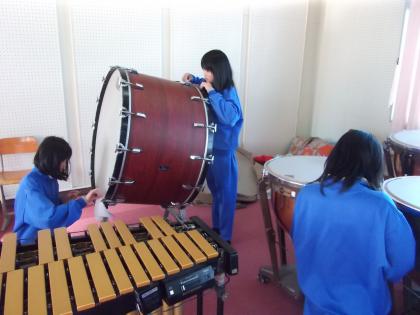 本日、吹奏楽部は普段使用している教室の掃除と楽器の手入れを行っています。