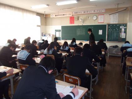 1月7日(月) 2限目 3年生が実力テストを受けています。いよいよ受験シーズンです。みんな頑張っています。