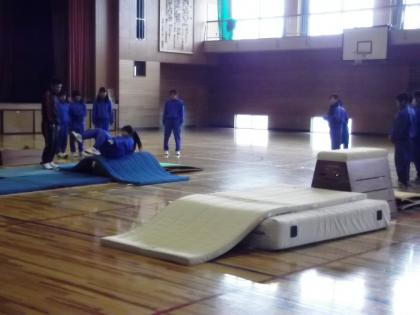 体育の授業 2年生女子 公開日 2013/01/09 更新日 2013/01/09 2学年 2年C組女子の体育は、跳び箱運動をしています。 今日で2時間目となり、開脚跳び・台上前転・斜め仰向け跳びを練習しました。 開脚跳びが全員できるように頑張っています。