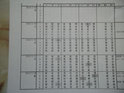 1月14日(月)〜18日(金)までの時間割予定