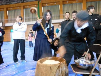 餅つきと餅を丸める様子です。