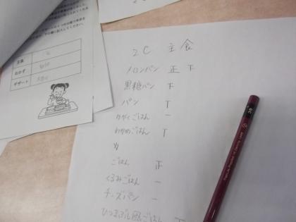 給食アンケート集計 公開日 2013/01/16 更新日 2013/01/16 学校生活 本日放課後、給食係でアンコール献立のアンケート集計を行いました。 人気メニューは、主食ーメロンパン、おかずーハンバーグ、デザートーお米のムースでした。 隅田中学校の希望として、給食センターに応募します。