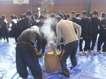 新年の集い☆2年生 公開日 2013/01/16 更新日 2013/01/16 2学年 2年生は多くの生徒が前日の準備を手伝ってくれました。 本番では杵と臼を使ってお餅を搗きましたが、やはり慣れないようで生徒たちは悪戦苦闘でした。 ですが、とても楽しかったようで素敵な笑顔を見せてくれました♪