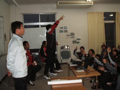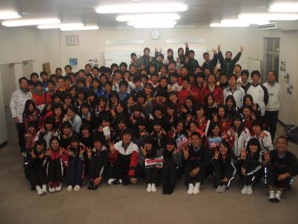 「世界で戦うための方法」を全日本ナショナルチームの高川選手・篠原選手・松口選手に指導していただきました。雨で実践練習はありませんでしたが、二人のビデオを見ながらフォーム分析・解説をしていただき、貴重な経験をさせていただきました。