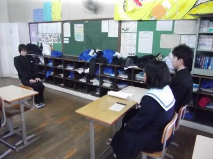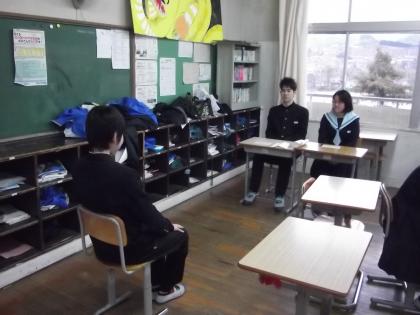 本日の放課後より、3年生の面接練習が複数の組に分かれて始まりました。先生方との面接のあとは、自分たちで試験官役をして、お互いの良いところや悪いところを言い合っていましたね♪