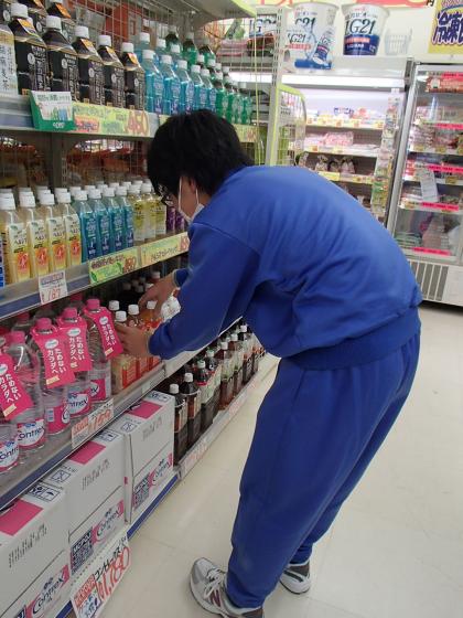 2年職場体験 ドラッグイレブンの様子です。商品の前だしをしていました。