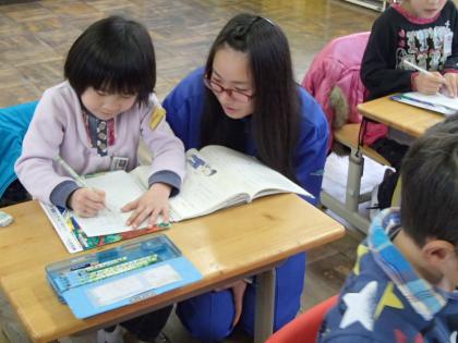 恋野小学校2日目です。授業の補佐をしました。給食も教室で食べました。