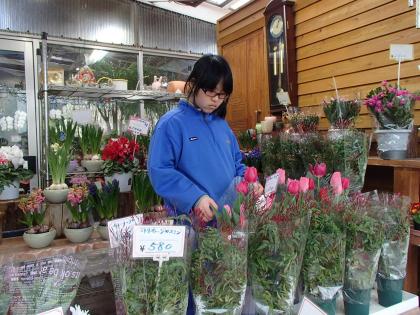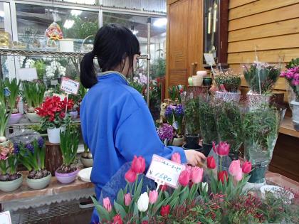2年職場体験2日目すみだ園です。花の水やりや商品の点検をしました。明日は花の仕入れに出かけます。