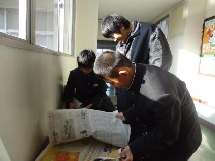 男子は渡り廊下のポスターの張替と、新聞記事の張替を行い、