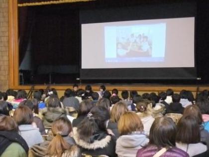 大勢の生徒・保護者の方々を前に生徒会執行部員3名は緊張していました(^^;)
