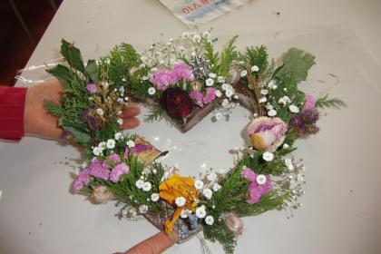 今回はバレンタインデーにちなんでハート型の花飾りを作りました。