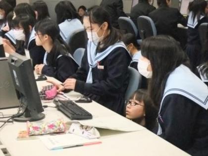 PC室に2年生全員が集まったので、PCを触れない班もありましたが、早く終わった班はまだの班と替わりスムーズに進んでいました♪