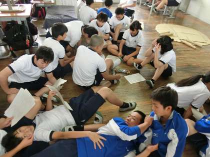 B組は、道具を作る人、劇のことを話し合っている人に分かれているようです。