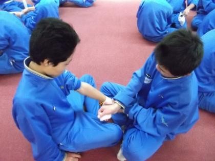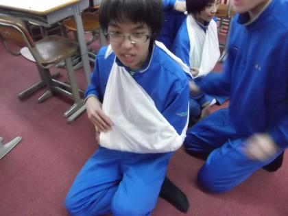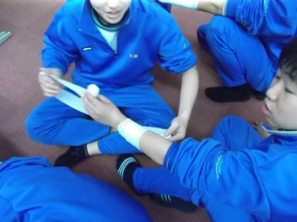 本日、5限目に2年生男子は、応急処置の実習を行いました。