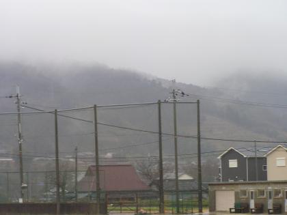 放課後の空の様子!!雨が降っていて霧が出ています!!