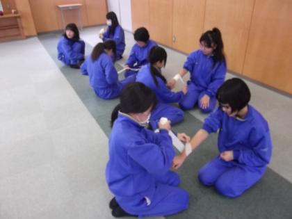 2年C組の保健の授業で、応急手当ての実技を行いました。