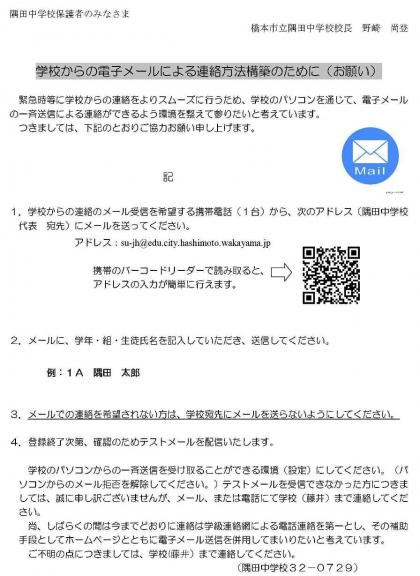 尚、配布したお知らせは本ページの「学校だより」にPDFファイルで掲載しています。