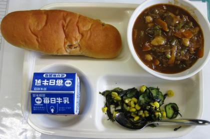 今日の献立は 《クルミパン・牛乳・ビーフシチュー・かいそうサラダ》 でした。