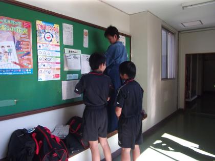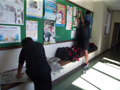 暑さに負けず、1年の男女が掲示委員活動を行いました。