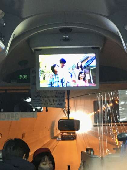 バスの中では、ハウステンボスのDVDが流れています。