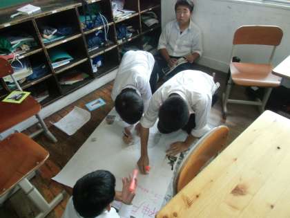 自分たちが回ったコースを地図に書きこみ、その周りに写真を貼ったり、記事を書いたりしています。楽しい遠足記になりそうです。