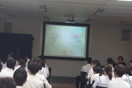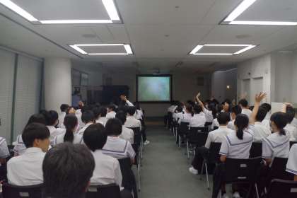 原爆が投下された時の様子を、全員がとても真剣に聞いています。